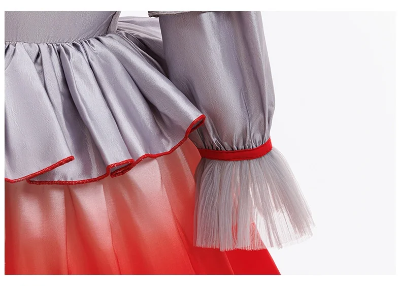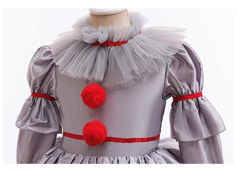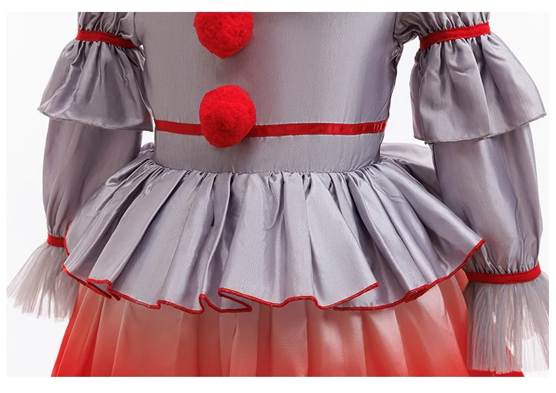 Girls Party Dresses Halloween Costumes Kids Horror Ghost Movie Joker Pennywise Cosplay Dress With Gloves Balloons Christmas